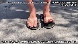 Hank muestra sandalias de verano bronceadas y suelas sucias 11 seg