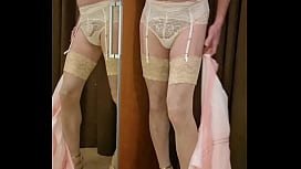 Crossdresser vistiendo lencería de lujo en su tocador 23 min