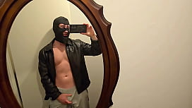 PhantomGentX Chaqueta de cuero Espejo ¡Se corre! Maestro caliente se masturba y eyacula una enorme cantidad sobre una camisa blanca 5 min