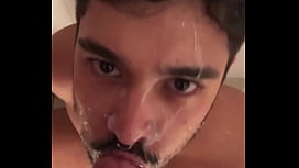 chupando y lavando semen en la boca